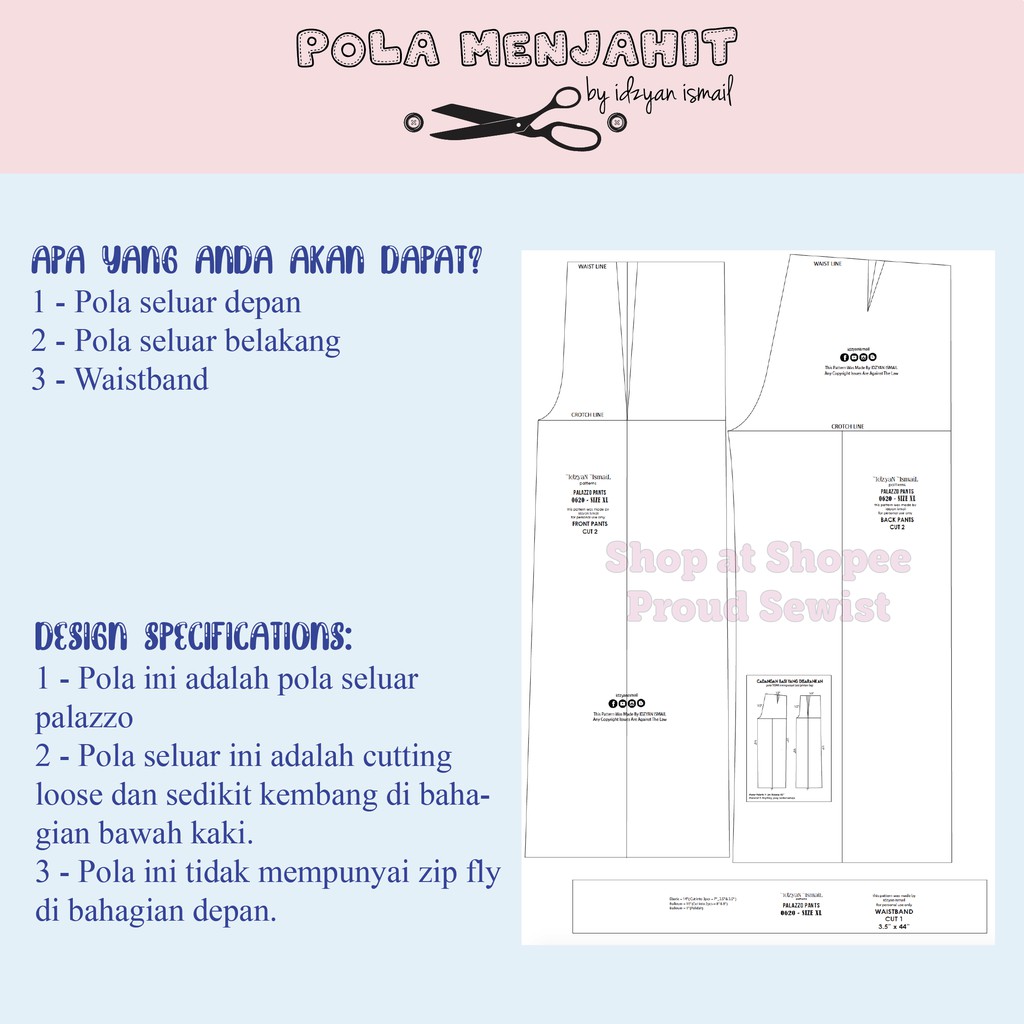 Rm 20/size ( *full set, . Don't forget to watch my last . Hot item *pola seluar 2in1 awie manik size dewasa*size available: Pola palazzo sewing clothes women, sewing pants, sewing tutorials,.